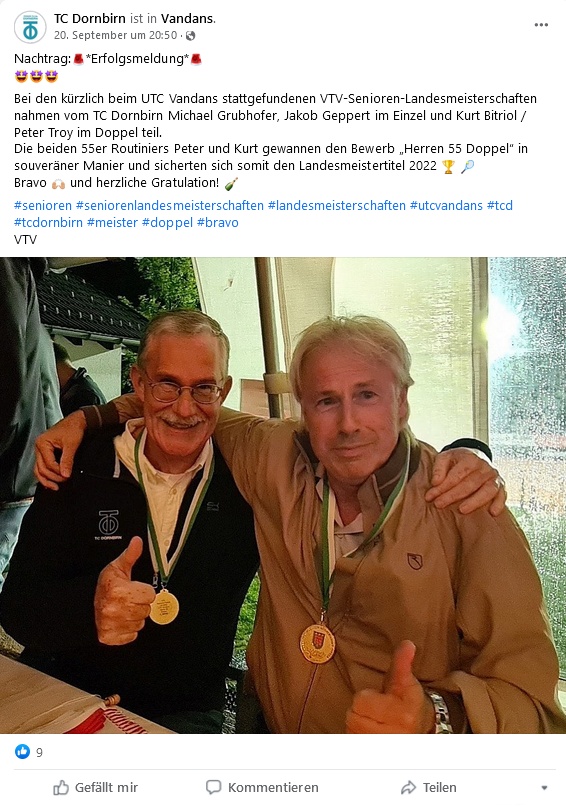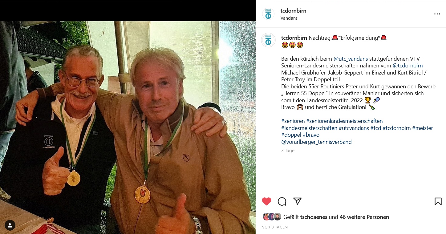 Bericht über die Doppel-Landesmeister 2022 Kurt Bitriol und Peter Troy auf der Webseite des TCD